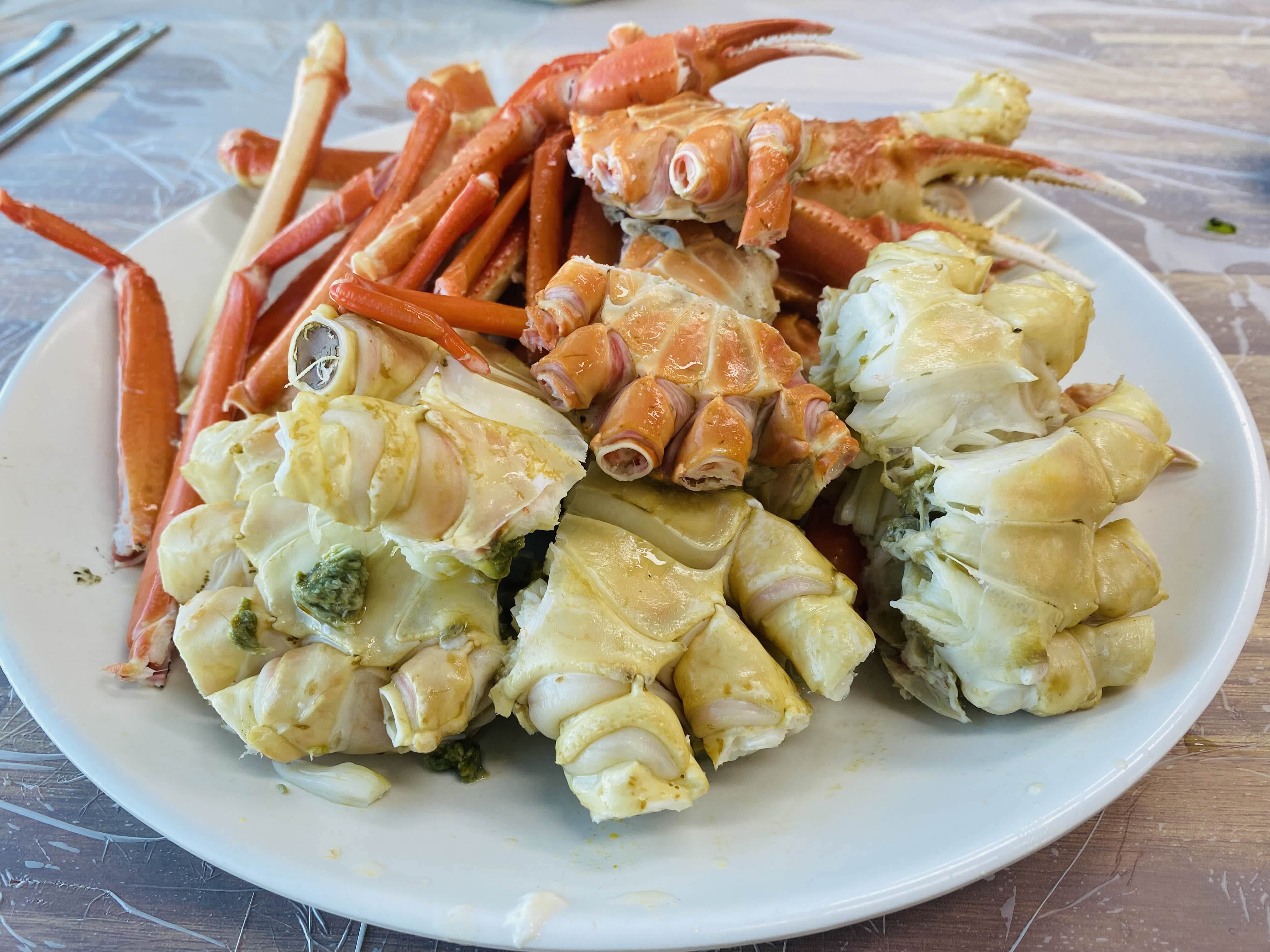 대게 2마리, 홍게 1한마리 살이 가득 차 있어서 러시아 산이라도 대게 수율이 좋은듯해요. 살이 꽉차있네요. 어른 2명, 아이1명이서 먹기에 양이 넉넉하구요. 술이나 음료등 주문 하나도 못하고 대게만 싹싹 긁어서 먹었네요. 단체로 오신 분들은 매운탕도 많이들 드시던데 저희는 배가 불러서 패스했어요.