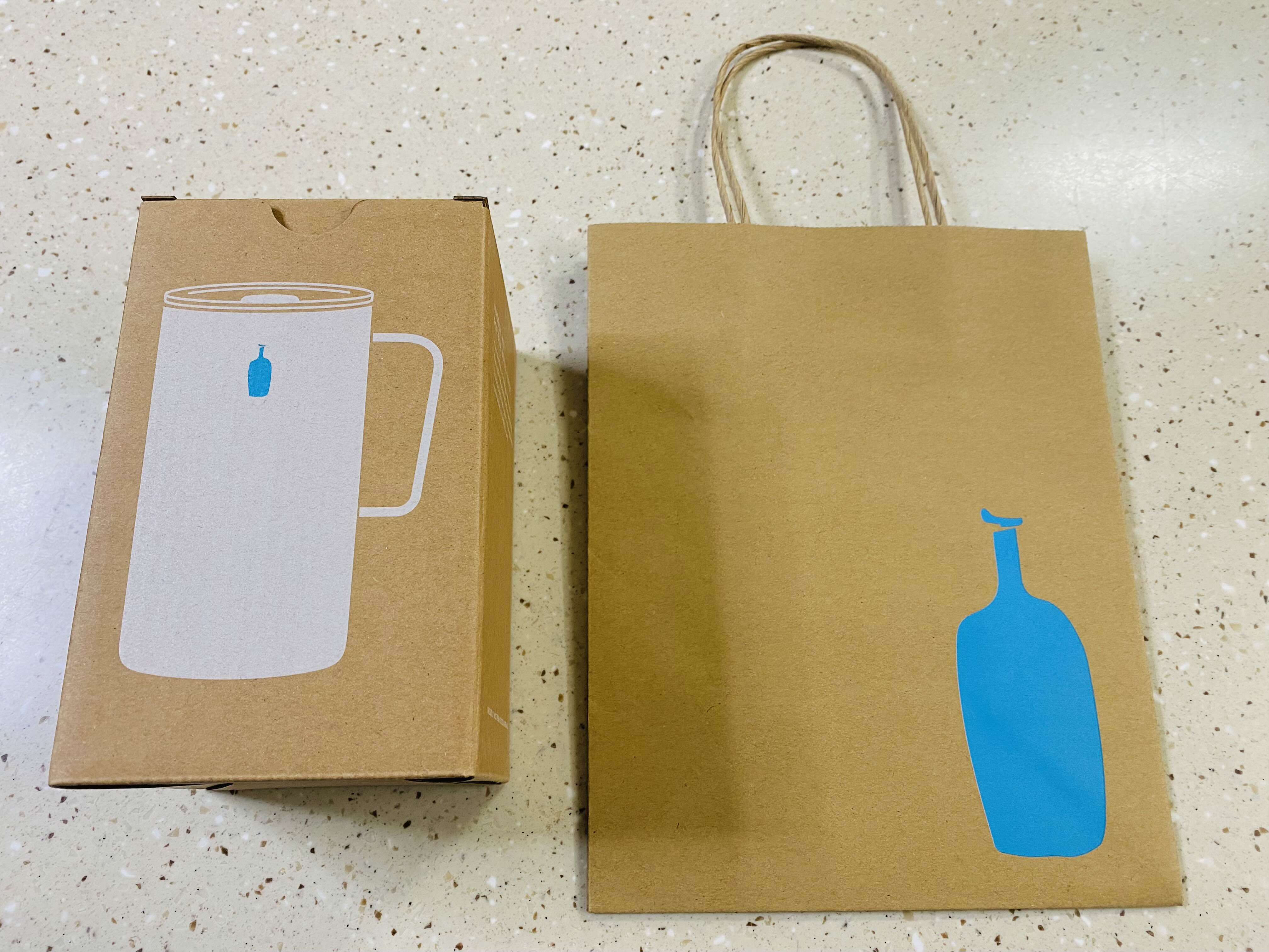 집에 텀블러는 주로 스타벅스 텀블러가 많지만 감성 담당 블루보틀 텀블러가 왠지 탐나더라구요. 사실 저번 블루보틀 팝업 매장에서 실물로 블루보틀 머그, 텀블러를 보고 마켓컬리에서 쿠폰 먹여 구매했어요. 마켓걸리 박스에 담아 택배로 배송 받았구요. 박스 안에 내용물은 쇼핑백, 블루보틀 상자 이렇게 두가지로 구성 되어있네요.