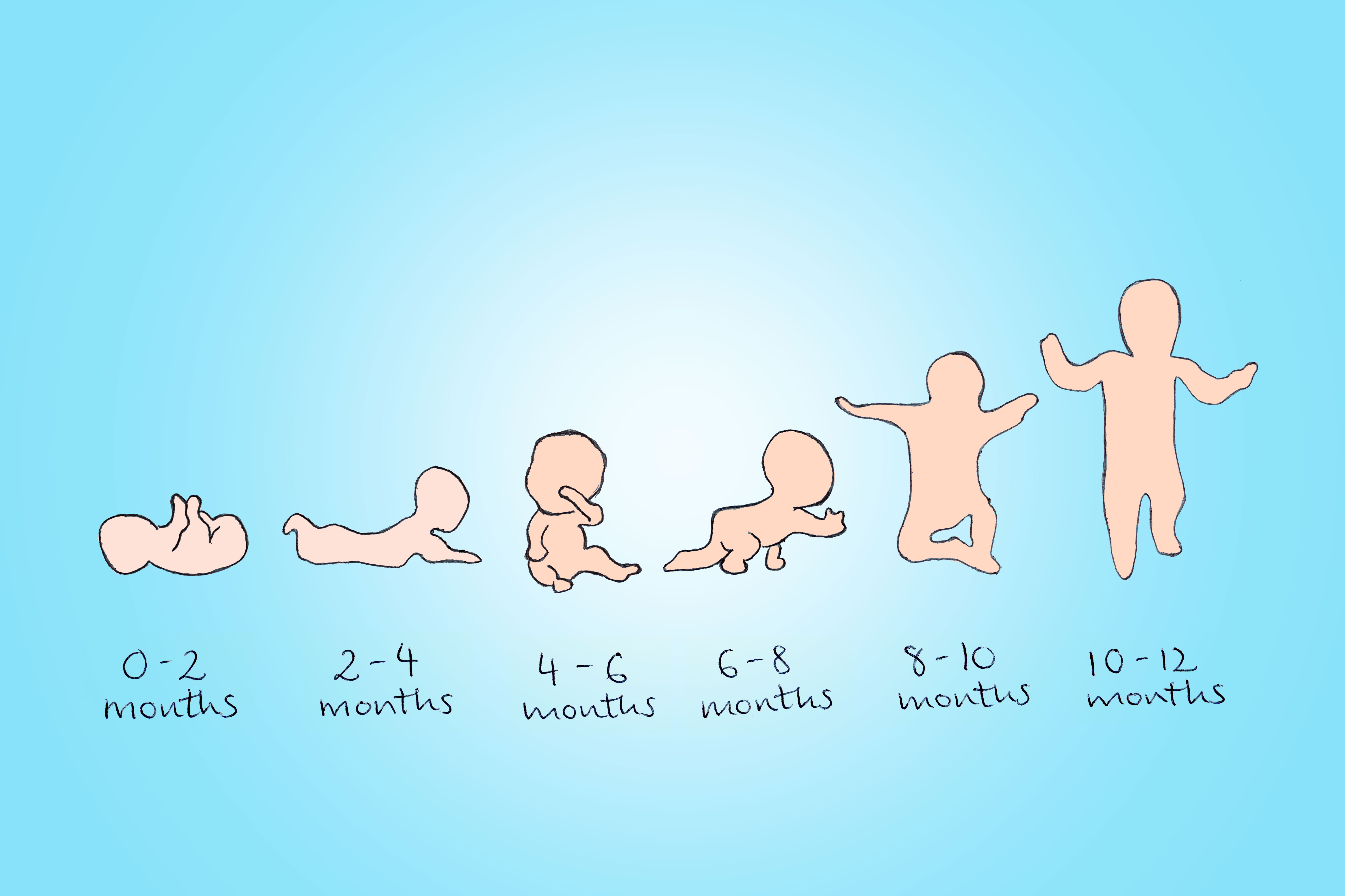 6개월: 스스로앉기, 두 손 짚고 엎드리기
